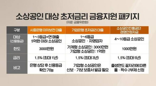 초저금리 대출은 신용 1~6등급 소상공인들에게 최대 3000만원 한도로 연 1.5% 금리(최대 3년)을 지원하며, 기업은행이 지신보 보증심사 발급을 대행하고 있어 방문한 기업은행 한 곳에서 자금지원을 모두 받을 수 있다.